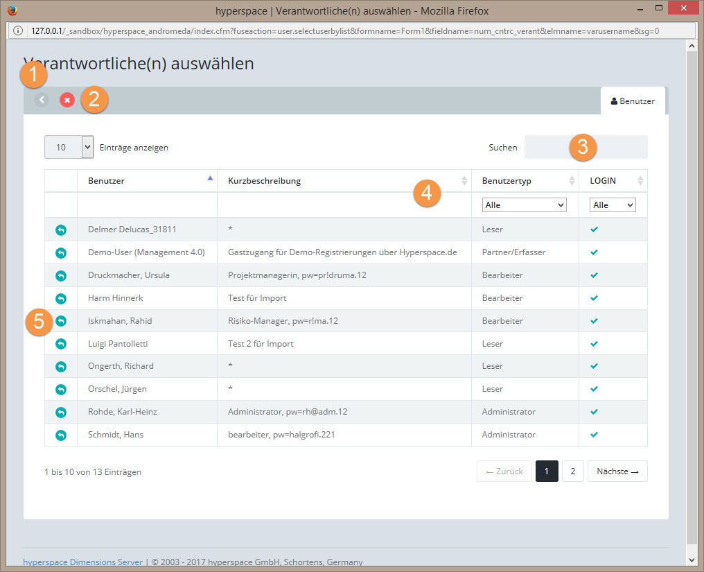 Klicken Sie auf den grünen Auswahl-Button (5), um den Verantwortlichen auszuwählen.