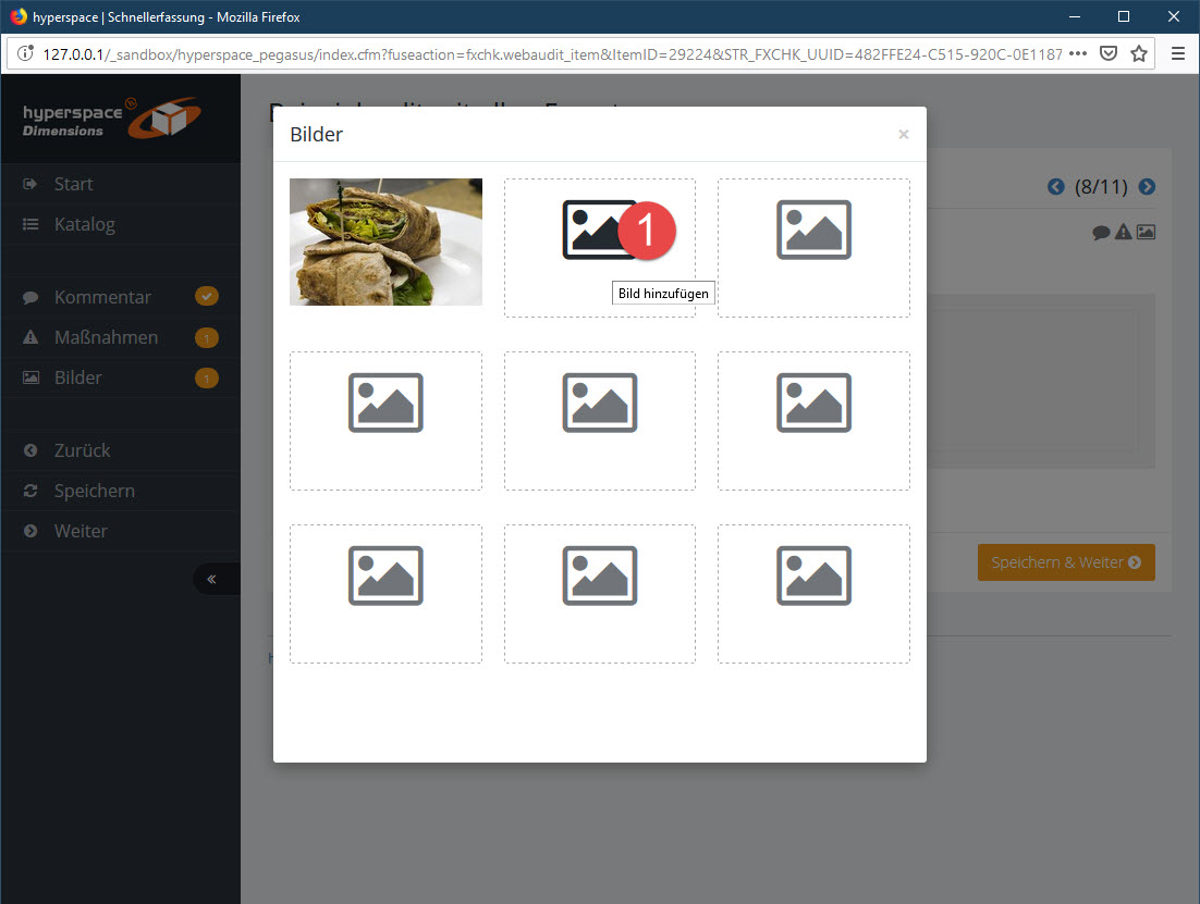 Klicken Sie auf eine graue Bild-Kachel (1), um ein neues Bild hochzuladen.