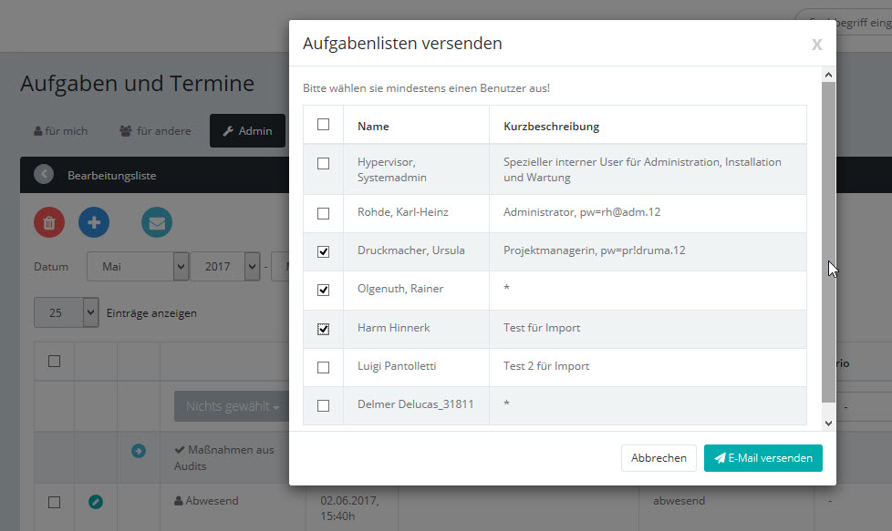 1.Aufgabenlisten an ausgewählte User per E-Mail versenden