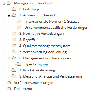 Das Handbuch stellt eine Ordnerstruktur als Handbuch dar, dabei bilden die Ordner der obersten Ebene die Kapitel und die darin enthaltenen Unterordner die Unterkapitel des Handbuches: