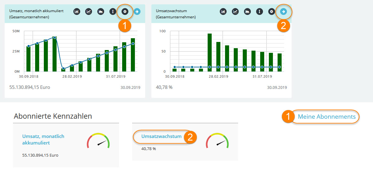 Beim Lucky Star Design können Sie drei Kennzahlen aus Ihren überwachten Kennzahlen auswählen, um diese als Chart darzustellen. Bei allen weiteren Kennzahlen wird dagegen nur der aktuelle Status als Tachometer angezeigt.