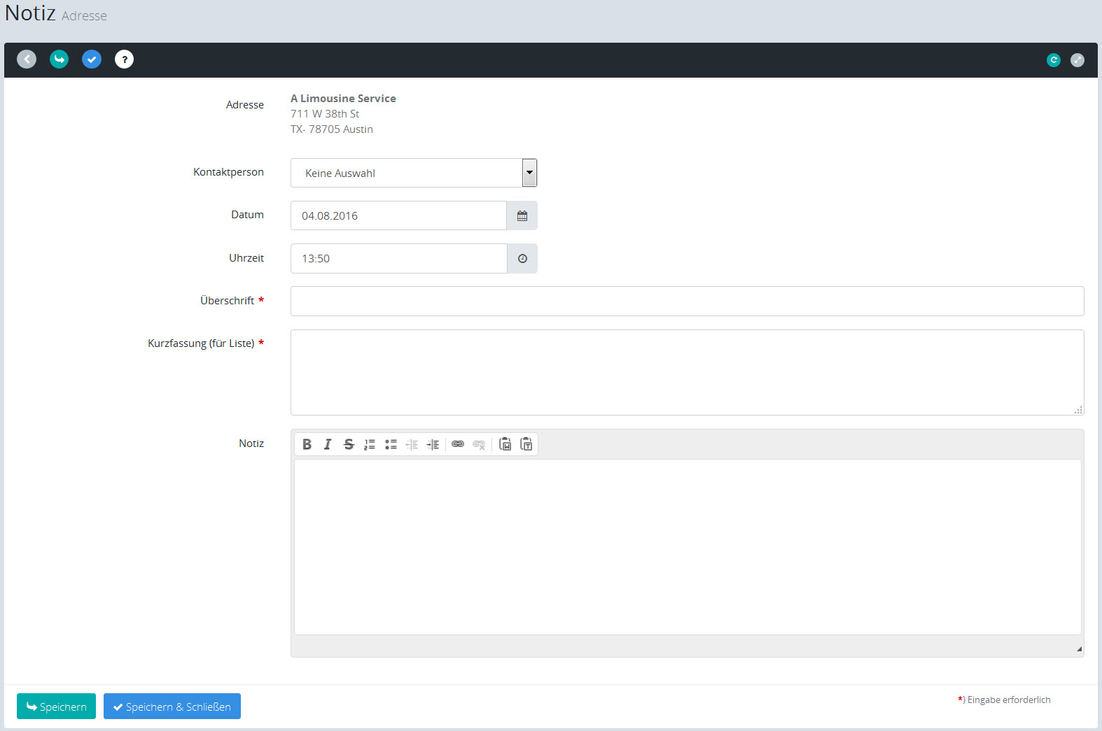 Hier können Sie über den angebotenen Texteditor die eigentliche Notiz verfassen. |